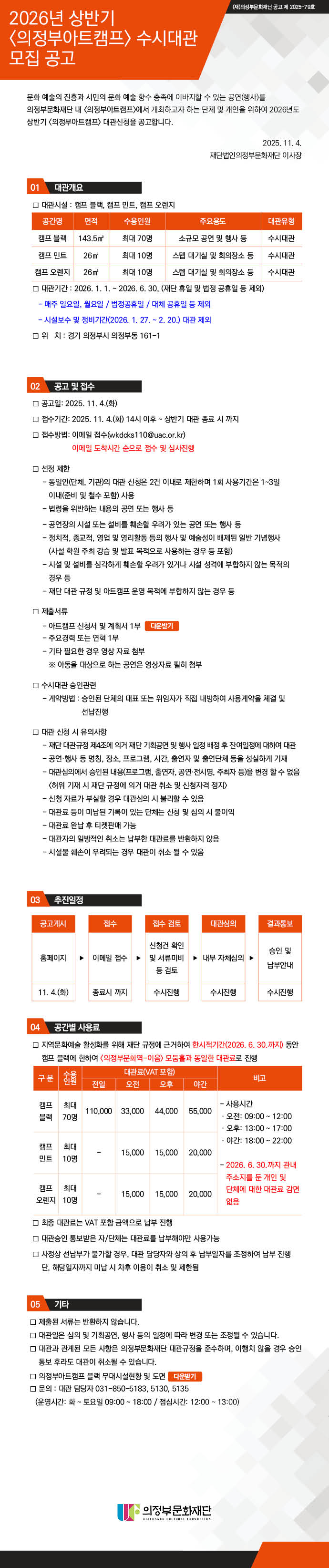 2026년 상반기 <의정부아트캠프> 수시대관 모집공고